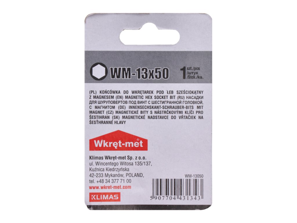 1 dielny blister s bitom SW 13, L = 50 mm