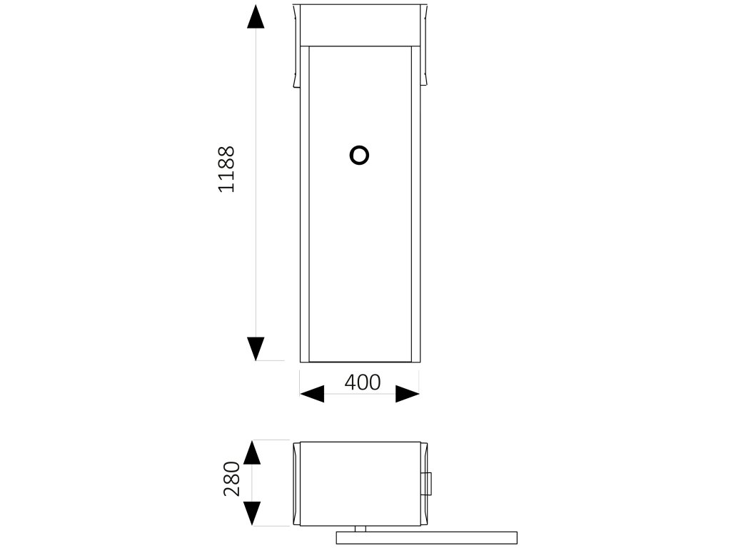 900ALT624K závora do 6m, 24V,300W, 1xCT-10224, bez ramena, model so zabudovaným majákom, šedá farba