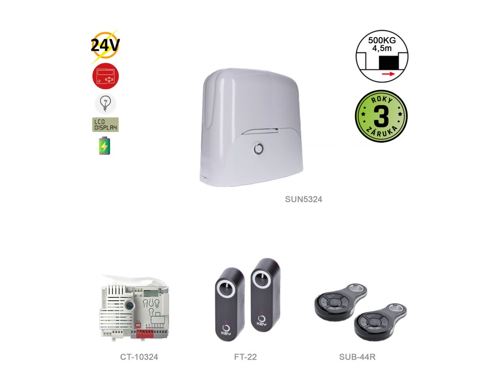 900KSUN5324KS pre posuvnú bránu do 500kg, 1x SUN5324 bez LED (24V, 250W, 18Nm), 1x CT-10324 so zabudovaným príjímačom, 2x SUB-44R, 1 pár, FT-32