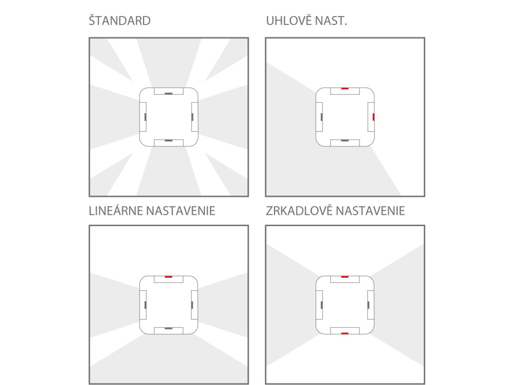· Svetelný lúč konfigurovateľný podľa želania, smerom dovnútra alebo smerom von