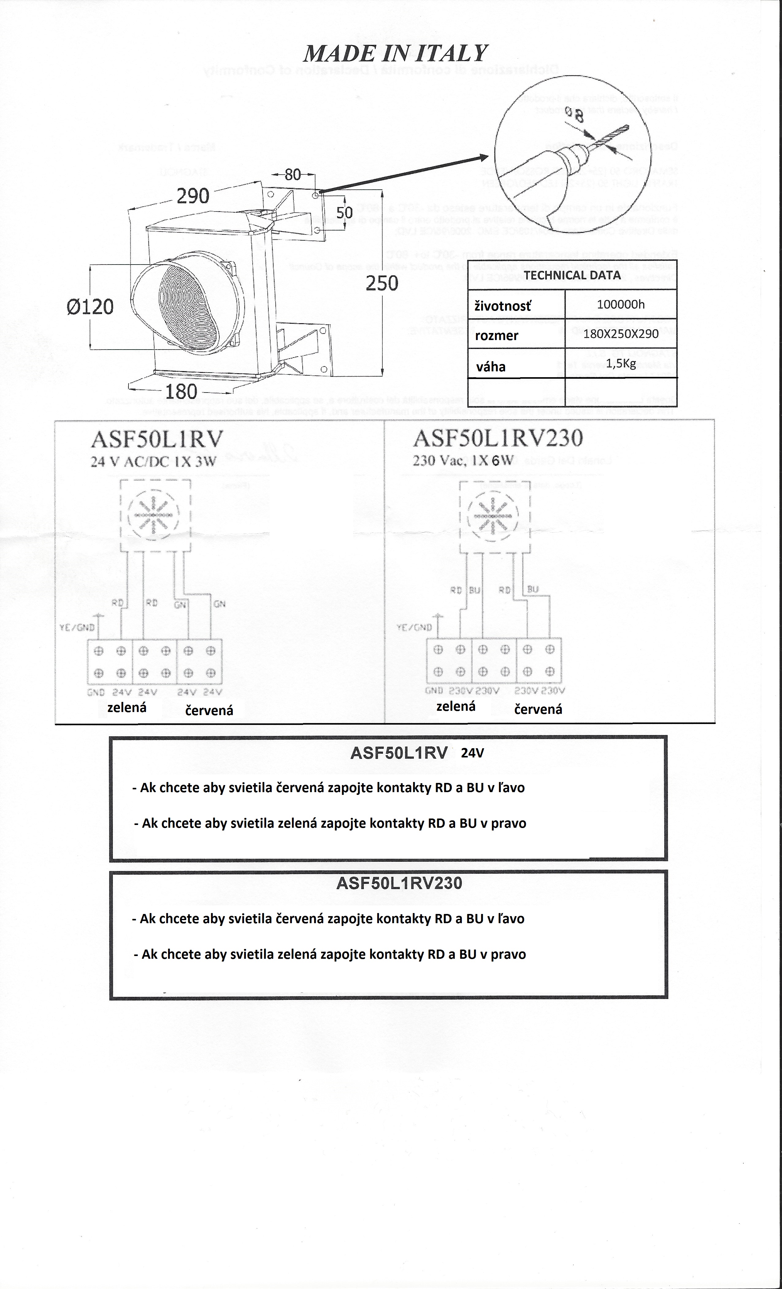 ASF semafor ø120mm jednokomorový červená/zelená, 25xLED 50Lux, hlinikový kryt, 24V DC, IP65Veľkou výhodou 24V LED semafore je jeho úspornosť.Pri 24 hodinovom svietení sú to ročne obrovské úspory proti klasickým žiarovkovým semaforom.
