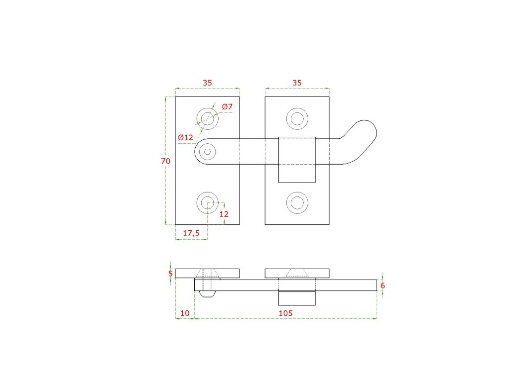 Bránový obrtlík, L:70mm, AISI316Dodatočné parametre