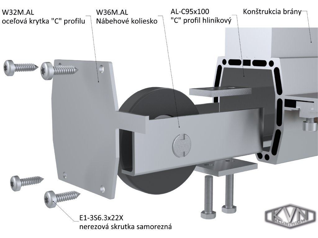 Videoukážka montáže nábehového kolieska W36M.AL do hliníkového samonosného profilu AL-C95x100: