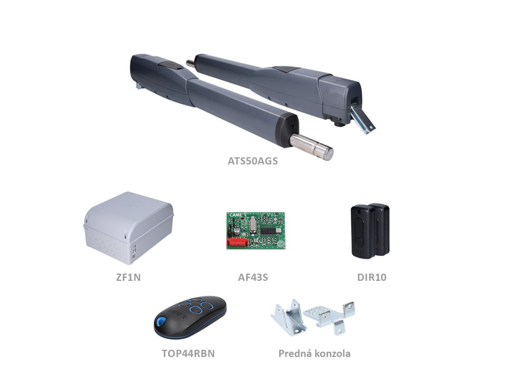 CAME ATS LONG 230V sada pre dvojkrídlovú bránu do 5m/krídlo, 2x ATS50AGS (230V, 250W, 3000N), 1x ZF1N, 1x AF43S, 1x TOP44RBN, 1 pár DIR10