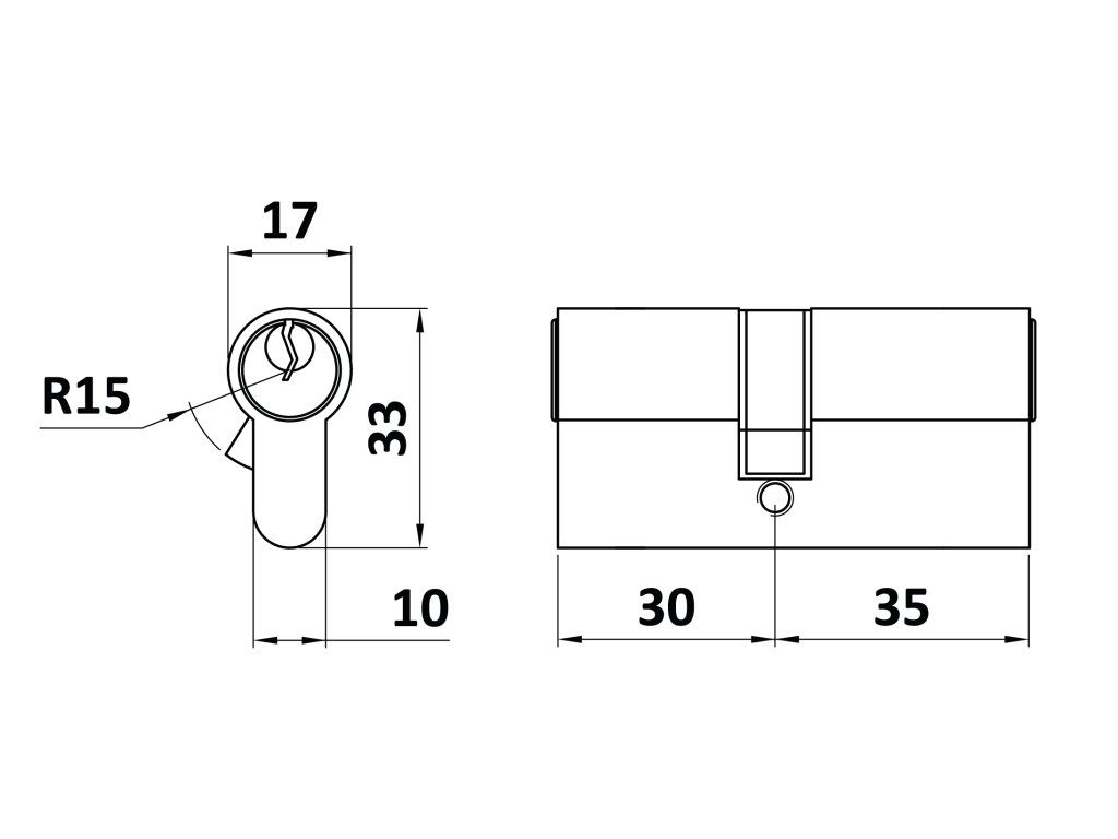 cylindrická vložka 30x35mm, mosadzná, 3 kľúče, skrutka M5x65mmDodatočné parametre