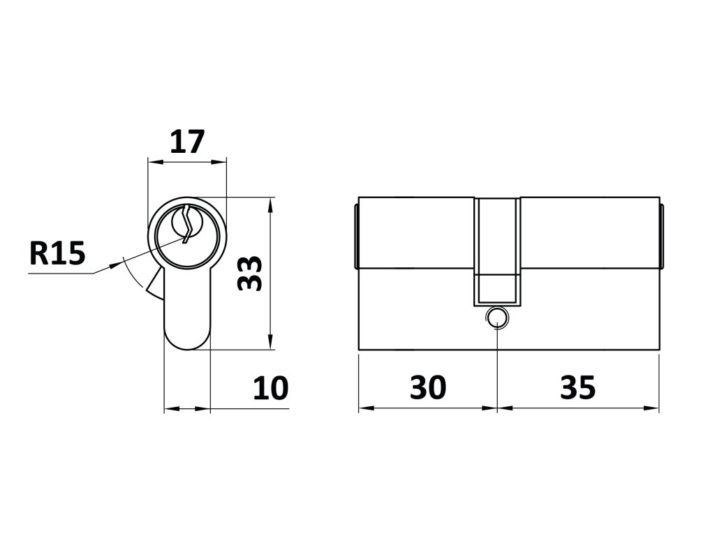 Cylindrická vložka EURO 30/35mm, niklová, 3 kľúče, skrutka M5x65mm