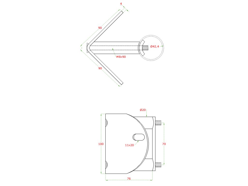 DOPREDAJ! úchyt na vnútorné rohové kotvenie stĺpu ø42.4mm, AISI304