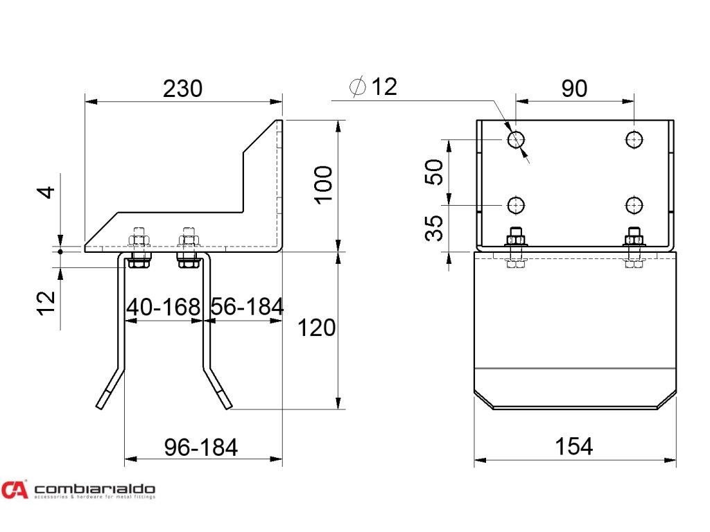 doraz Combi Arialdo na bránu vrchný nadst. 155x230x220x4mm