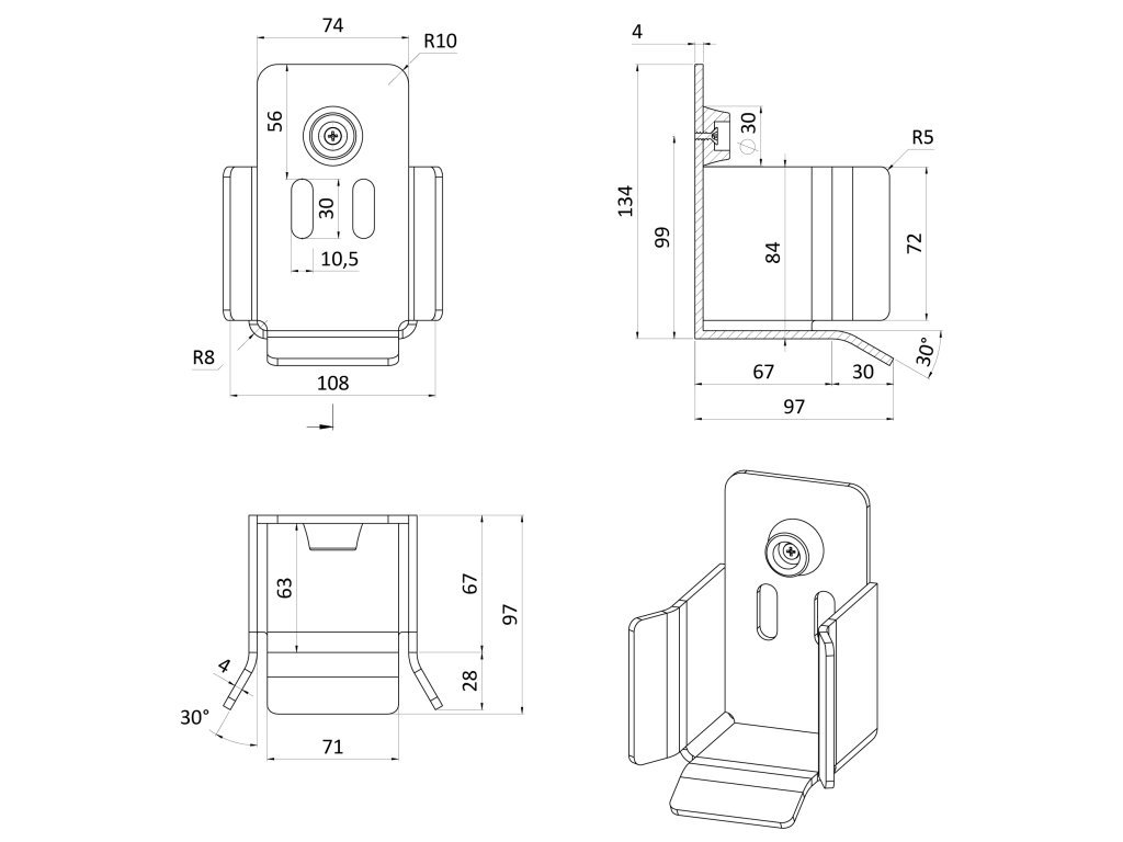 Doraz pre samonosnú bránu, pre profil 70 x 70 mm