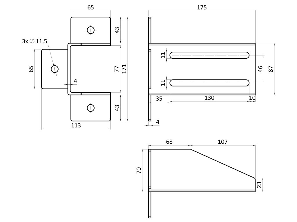 Držiak pre dorazy posuvnej brány 113 x 174 x 175 mm
