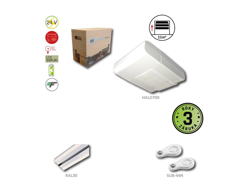 Pohon HALO 700N pre sekcionálne brány do 11m² / 90kg so svetelnou lištou RAL30, 2x SUB-44WRVÝHODY POHONU HALO: