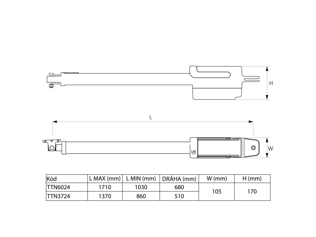 (TTN6024HS a TTN6024RHS) alebo 450 kg. Elektromechanický pohon pre vonkajšiu montáž, 24 Vdc, s magnetickým enkóderom.
