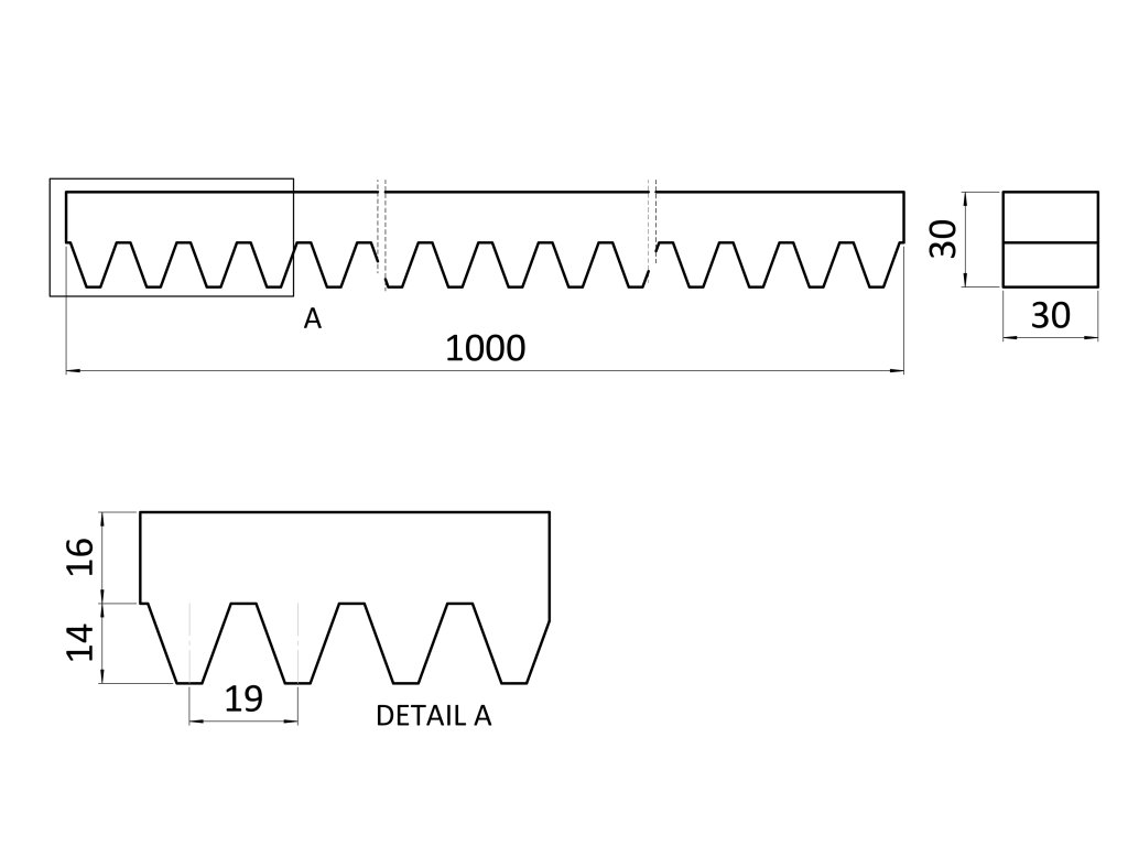 Hrebeň kov 30x30mm, L-1000mm, pre pohony s pastorkom M6, max do 5000kg, pozinkovaný, cena za kus