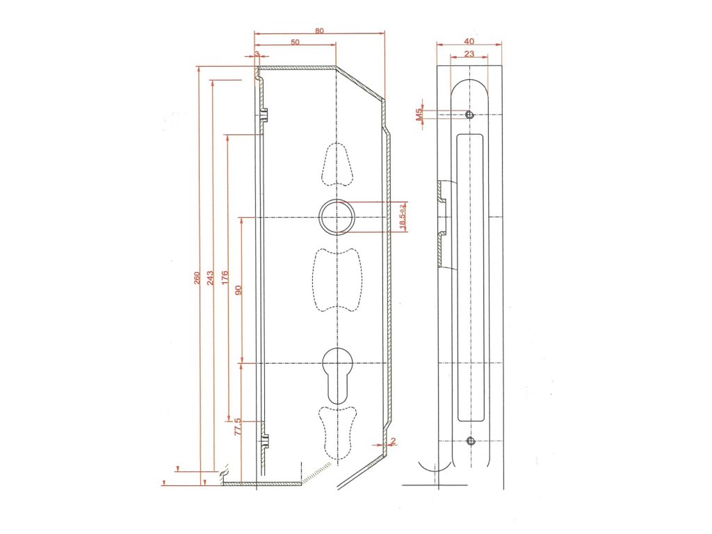 Kazeta 260x80x40mm,na profil 40x30mm so zámkom,rozteč 90mmDodatočné parametre