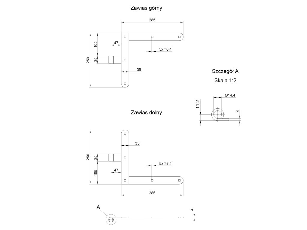 Kovanie 250x290mm, 35x4mm, otvor pre čap ø 14mm, povrch čierny lak, pravéDodatočné parametre