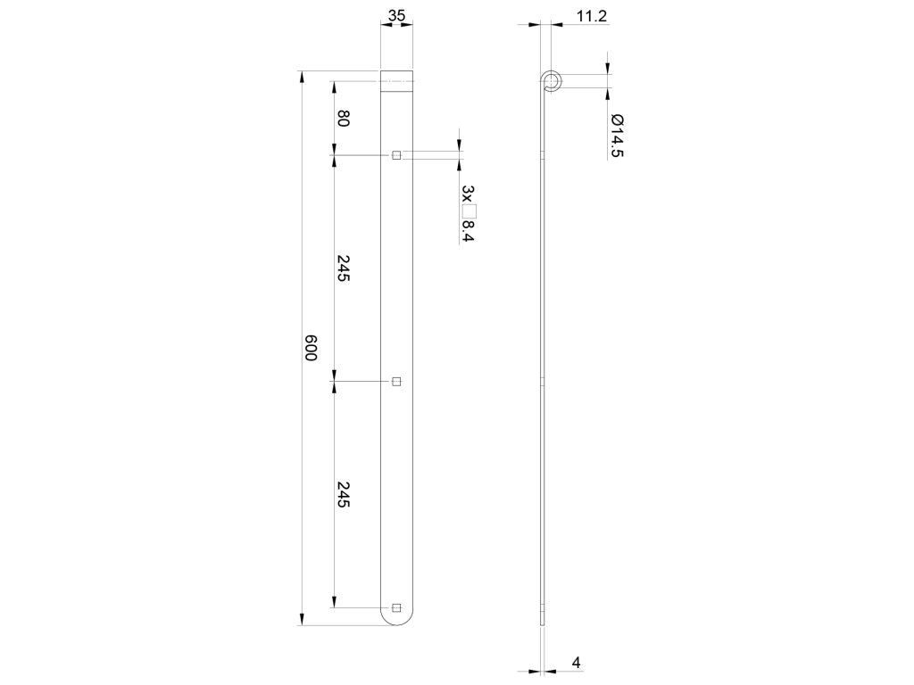 Kovanie pásové 600x35x4mm, otvor pre čap fi.14mm, max zaťaženie 20kg, max šírka krídla 1000mm