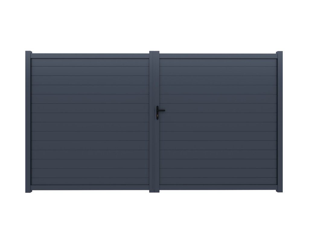 Moderná hliníková krídlová brána vhodná pre rodinné domy, bytové komplexy, firemné aj priemyselné areály.Konštrukcia brány je vyrobená z kvalitnej hliníkovej zliatiny 6063-T5, ktorá je bežne používanáv exteriérových bránových a plotových systémoch pre svoju pevnosť, tvarovú stabilitu a vysokú odolnosť voči korózii.