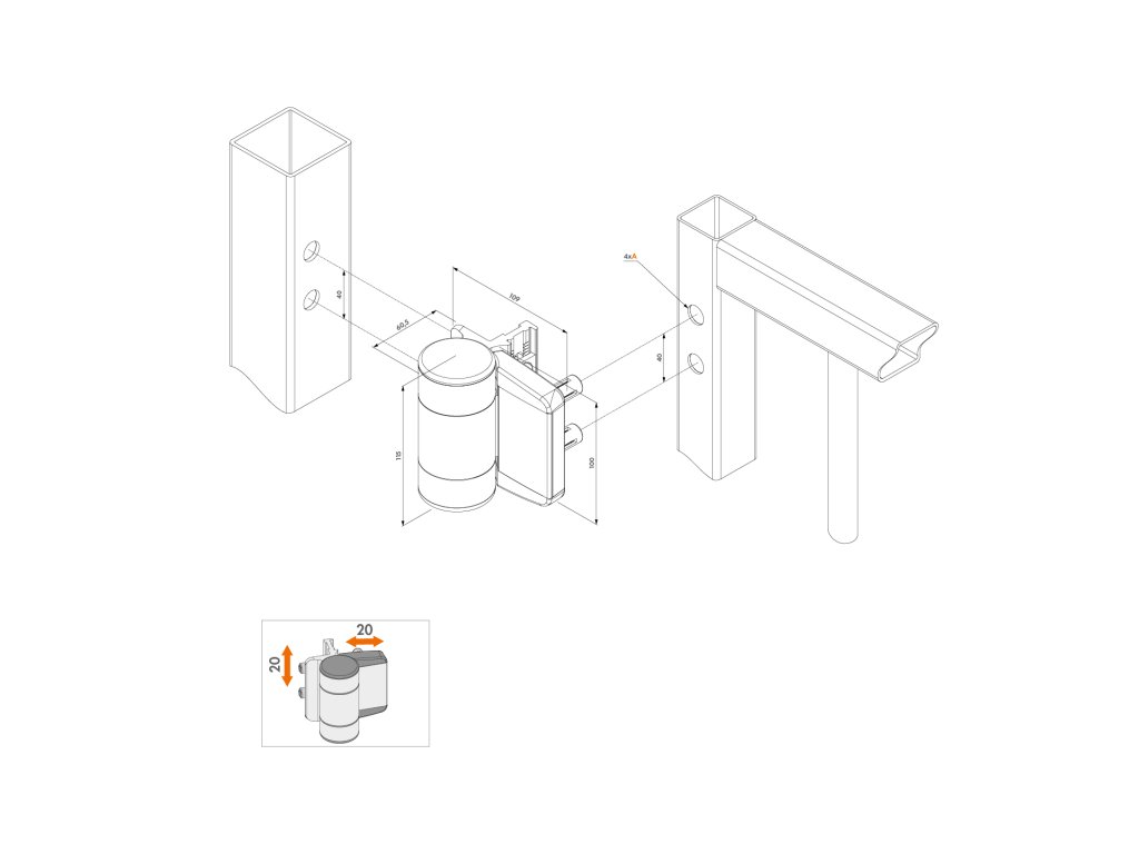 Dvojložiskový záves zaručuje hladké otvorenie brány. Záves je vyrobený z nerezovými ložiskami v hliníkovom puzdre.Po inštalácii je záves nastaviteľný v dvoch-smeroch. Nastavením závesu docielite súbežnosť vyosených krídiel (napríklad vyosenie stĺpika vplyvom mrazu). Záves umožňuje reguláciu 20 mm na šírku (X), 20 mm na výšku (Y).