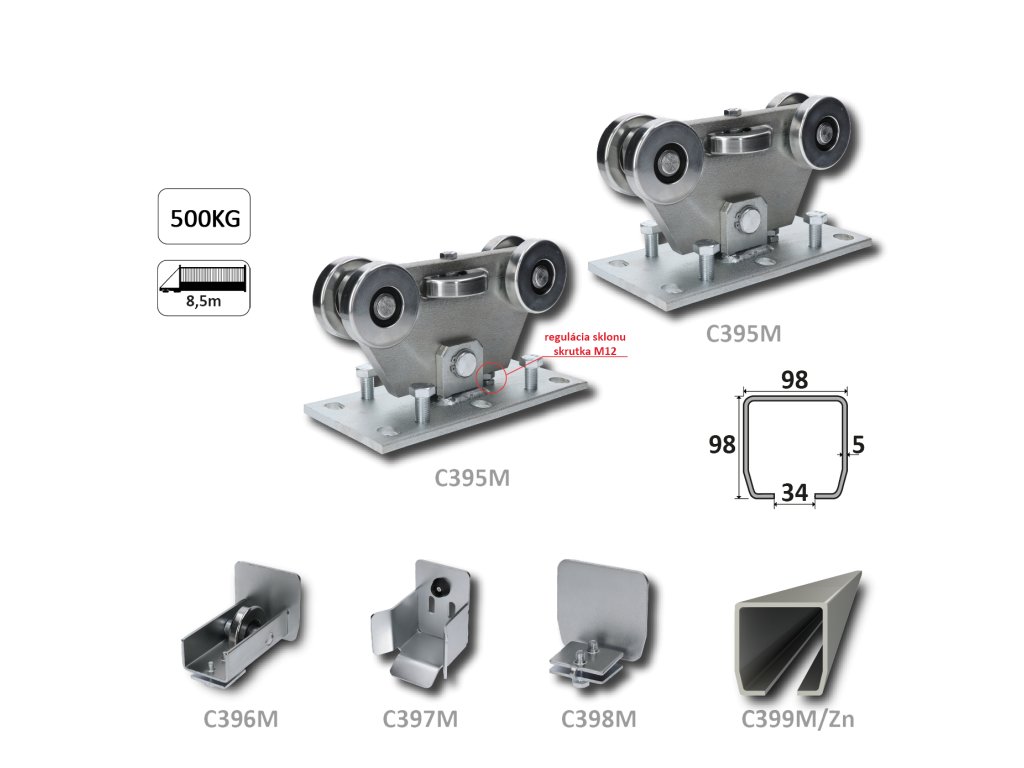 MEDIO-Klasik samonosný systém 98 x 98 x 5 mm posuvnej brány do 500 kg/8,5 m otvor, bežná prevádzka