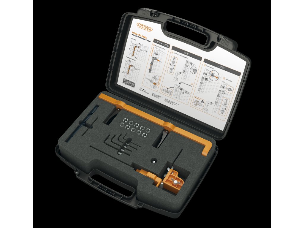 Súprava náradia a nástrojov potrebných pre montáž zatváračov brány LOCINOX® Lion a LOCINOX® Verticlose-2. Montážne a vŕtacie prípravky uľahčia montáž, sú zárukou bezchybného zamerania pred montážou a šetria čas.