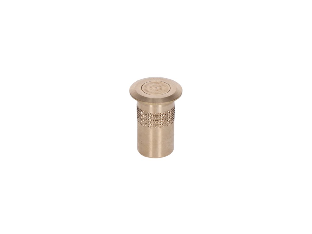 Mosadzná západka k rígľom s prekrytím proti nečistotám, vnútorný ø 12mm, vonkajší ø 16mm, dĺžka 30mm, s pružinkou, hĺbka zapustenia 20mm