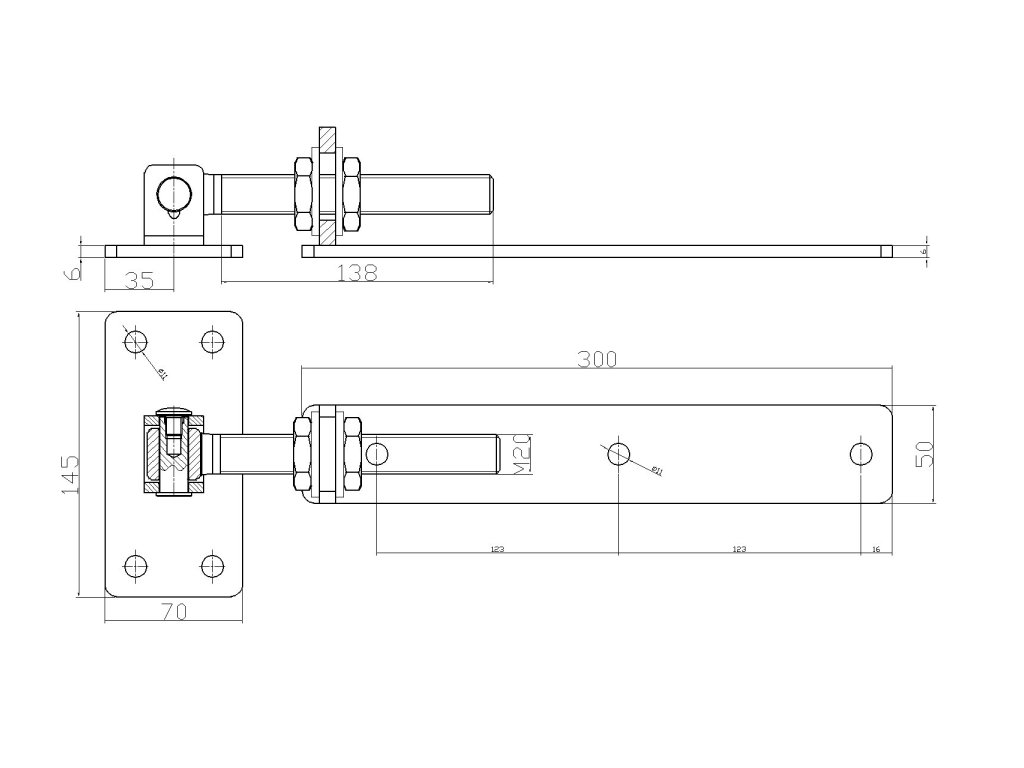 Nastaviteľný pánt M20, L = 300 mm