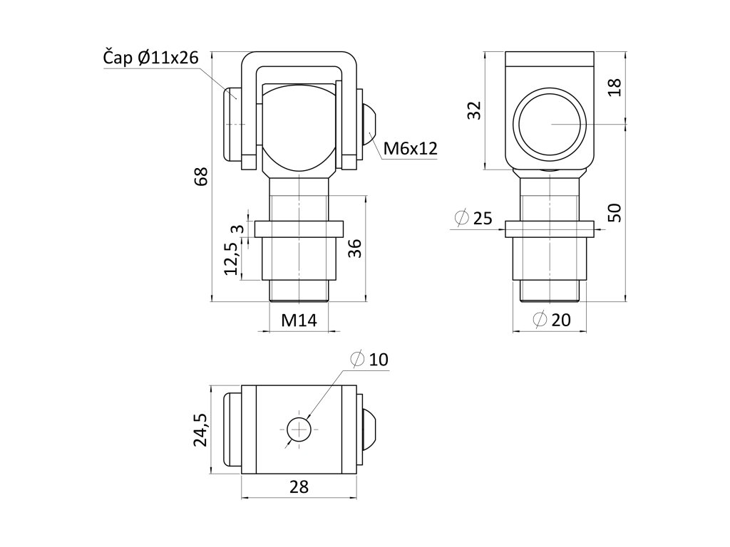 Záves nastaviteľný, navárací, závit M14, brúsená nerez /AISI304Pozor!!! Technické charakteristiky uvedené vyššie sú čisto orientačné a môžu podliehať variáciám od šarže k šarži, v závislosti od výroby.