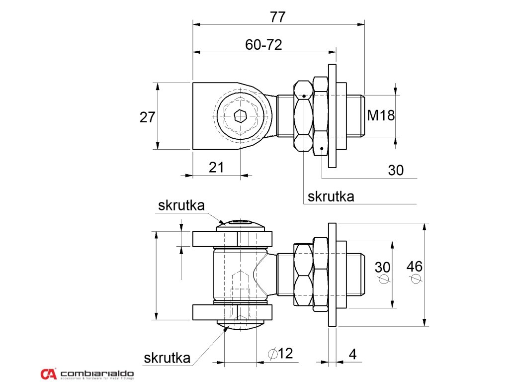 Navárací záves M18, 90°, nastaviteľný 1D s kontramaticou