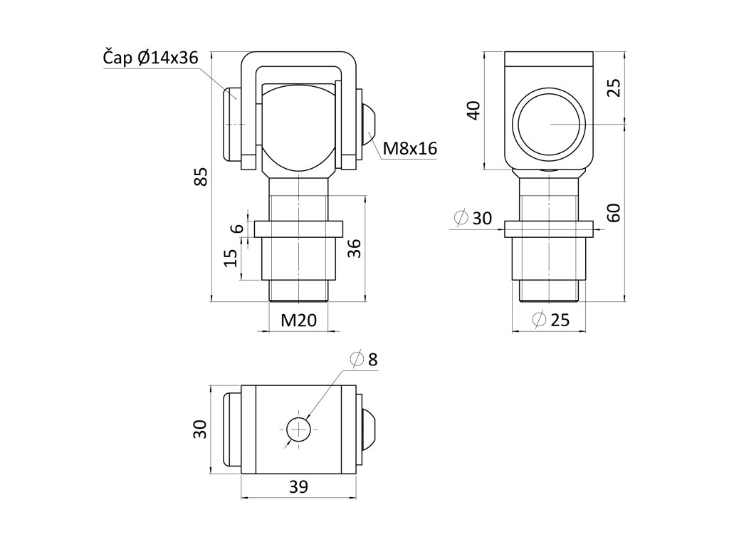 Záves nastaviteľný, navárací, závit M20, brúsená nerez /AISI304Pozor!!! Technické charakteristiky uvedené vyššie sú čisto orientačné a môžu podliehať variáciám od šarže k šarži, v závislosti od výroby.