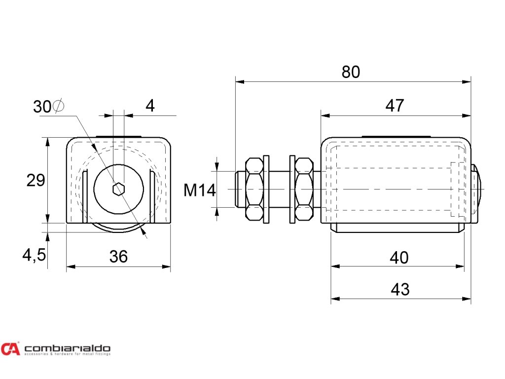 Nylonový vodiaci valček ø 30 x 40 mm, M14 pre horné vedenie