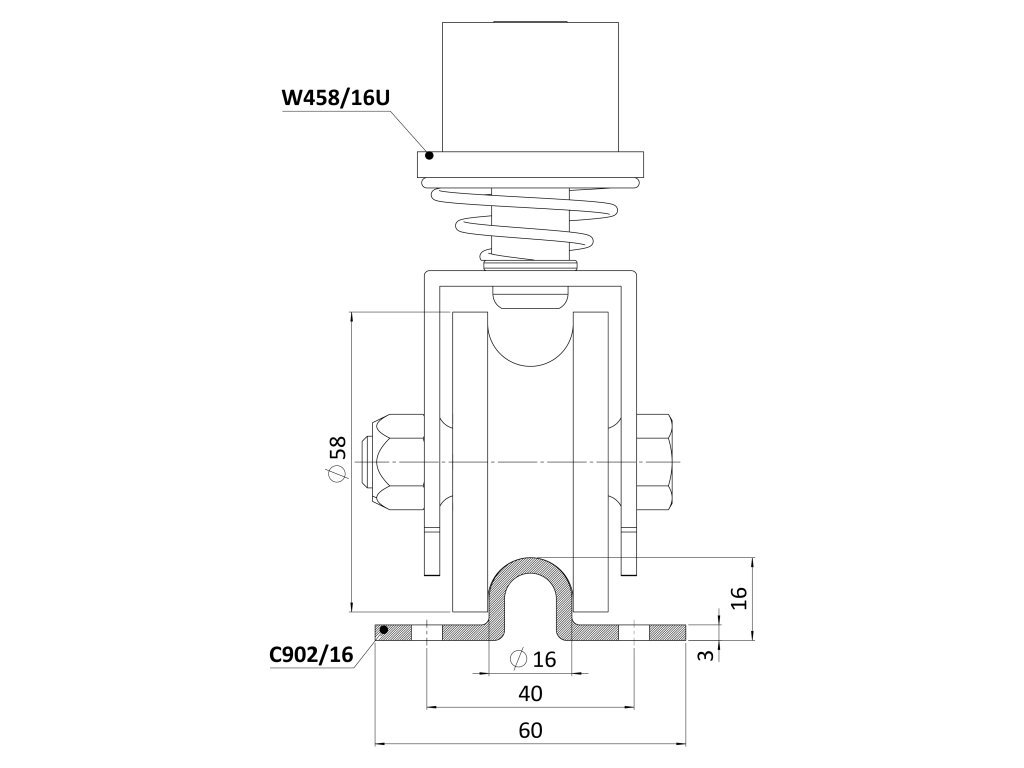 Otočné vodiace koliesko 58mm, pre U profil ø16mm