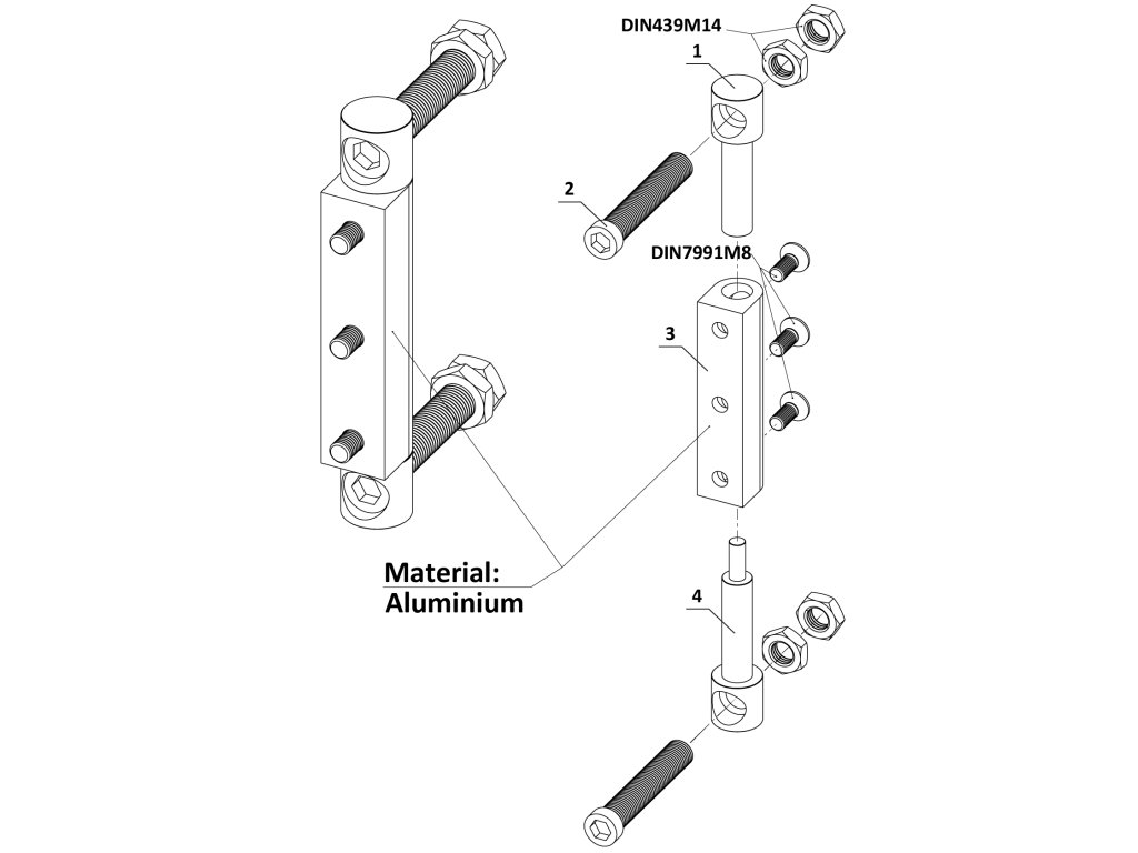 Pánt s 3xM8 skrutkami, kombinácia nerezovej ocele AISI304 a hliníka.Dodatočné parametre