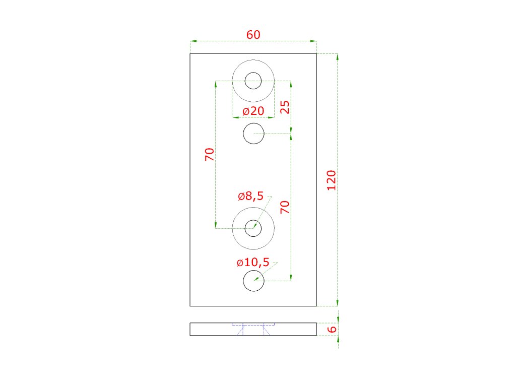 platňa na bočné kotvenie stĺpu (120x60x6mm) brúsená nerez K320 /AISI304Dodatočné parametre