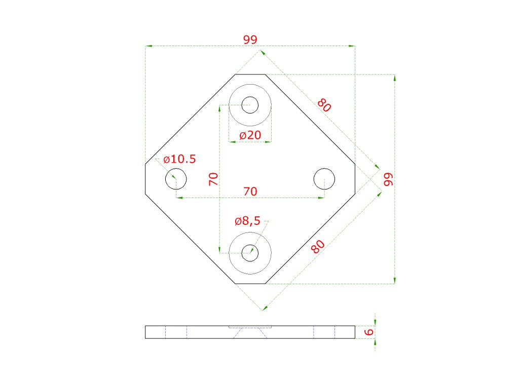 platňa na bočné kotvenie stĺpu (80x80x6 mm) brúsená nerez K320 /AISI304Dodatočné parametre