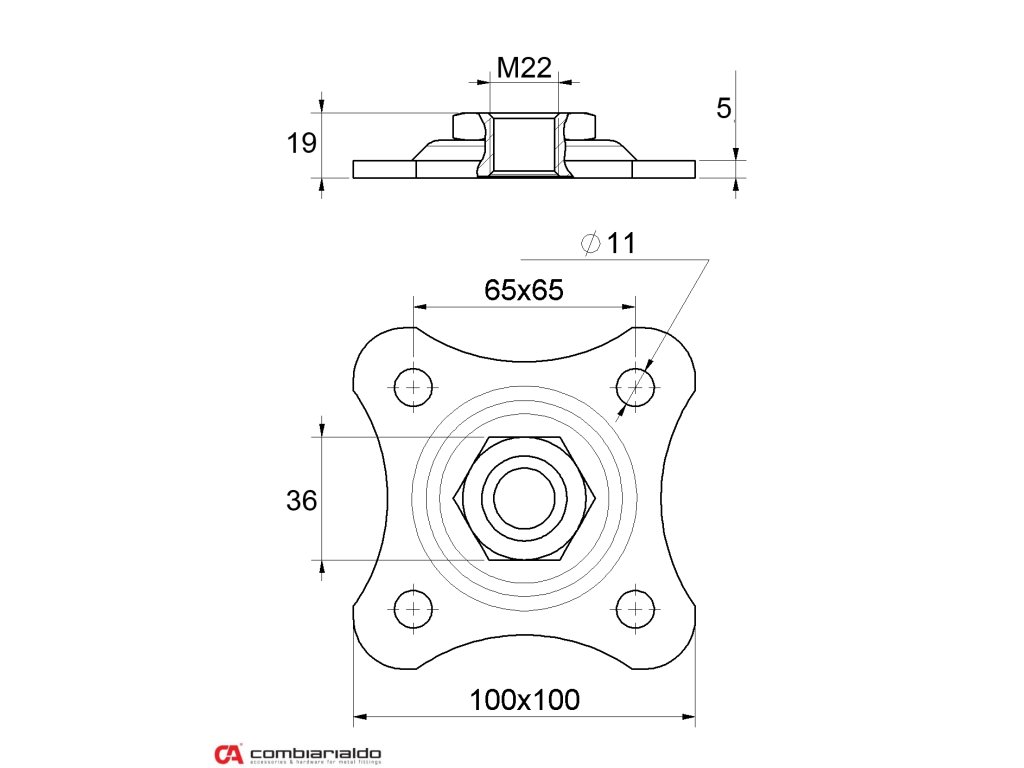 Kotviaca platňa v tvare hviezdy od popredného talianskeho výrobcu Combi Arialdo. Povrchová úprava- pozink, určená pre závitové úchyty M22 pre pevný úchyt do steny alebo na stĺp.
