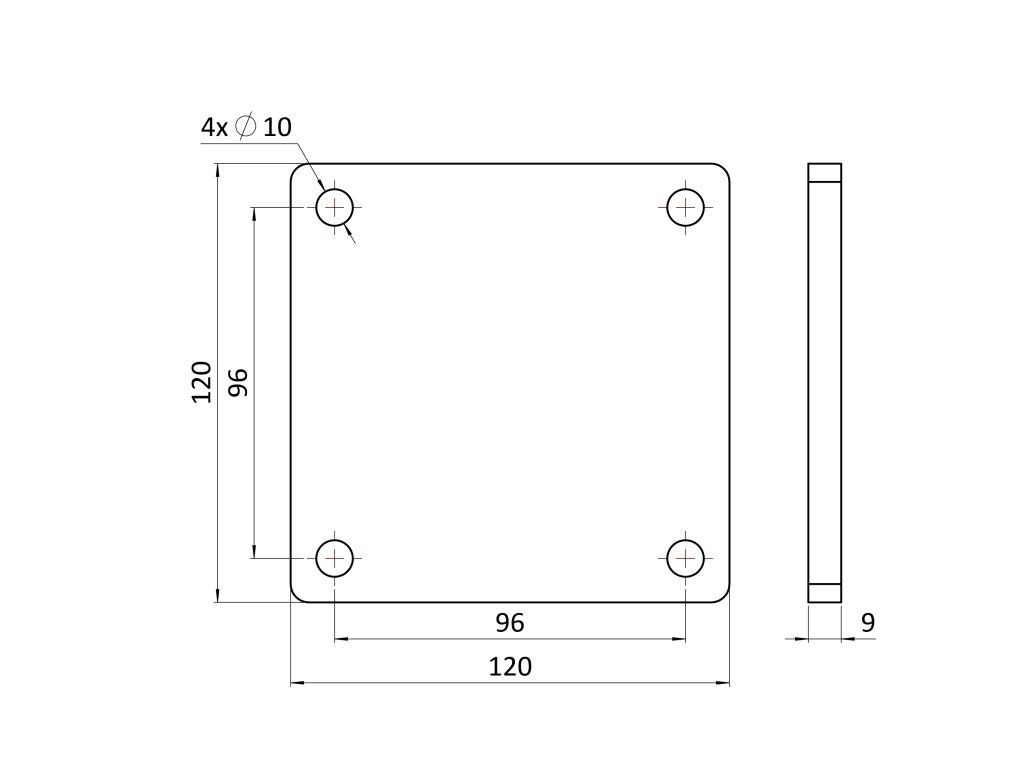 Platňa univerzálna 120x120x9mm, bez povrchovej úpravy