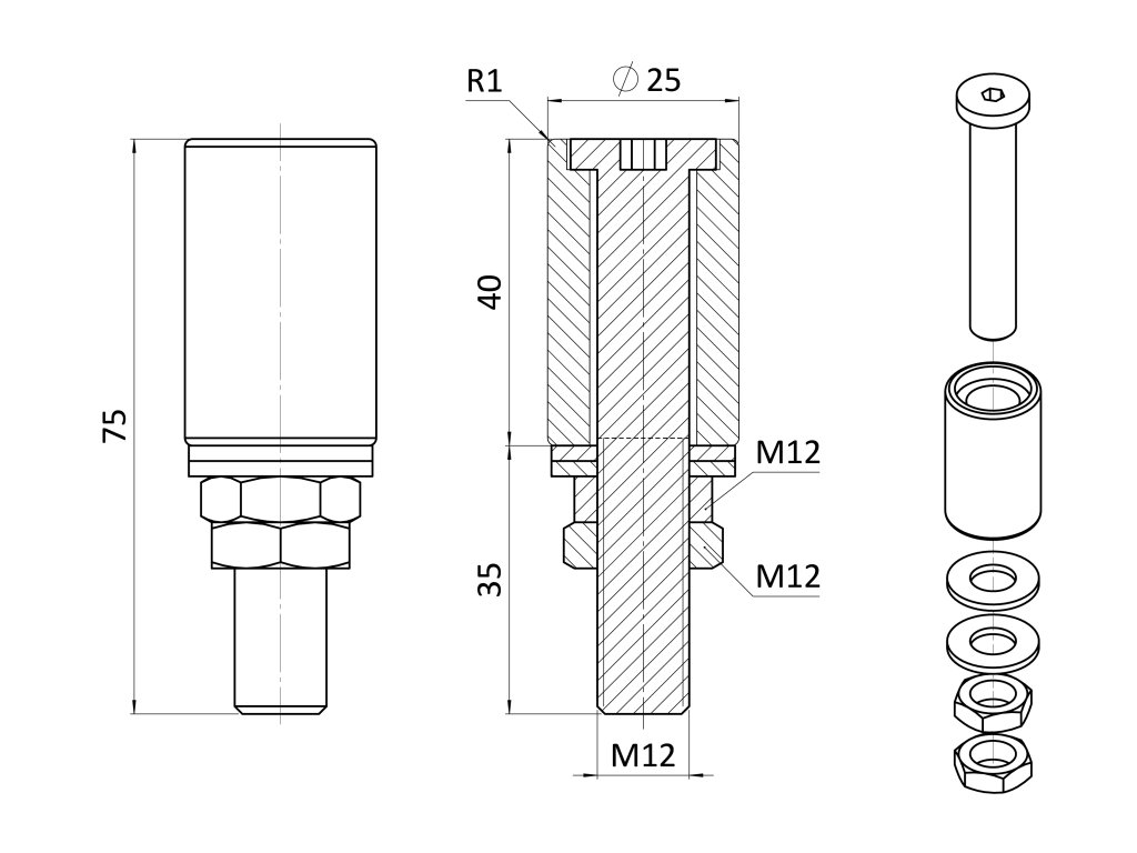 Polyamidový vodiaci valček 25 x 40 mm, M12 pre horné vedenie