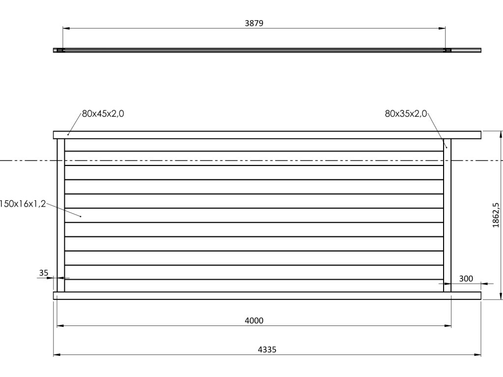 Posuvná brána, hliníková 4000 x 1862 mm