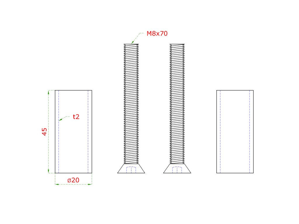 Prechod na vymedzenie vzdialenosti medzi stĺpom (plochý) a kotviacou platňou, ø 20x2.0mm /L:45mm, vnút. skrutka: M8x70mm, brúsená nerez K320 /AISI304, bal: 2ksDodatočné parametre