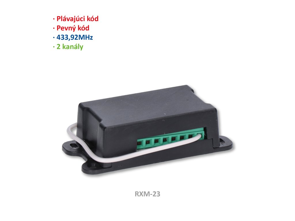 900RXM23Y prijímač externý 2-kanálový (433MHz), pevný aj plávajúci kód, pamäť: 1000 kódovDodatočné parametre