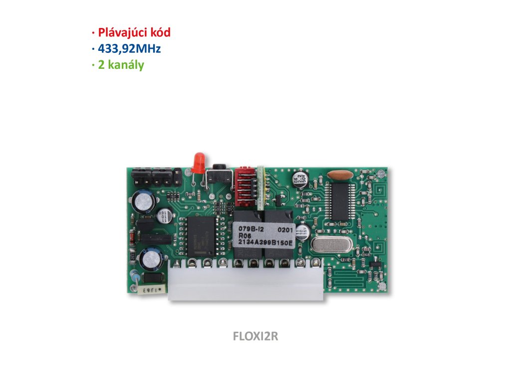Prijímač zástrčkový, 2 kanálový, plávajúci kód, 433.92MHz, pamäť na 63 vysielačov, séria FLOR