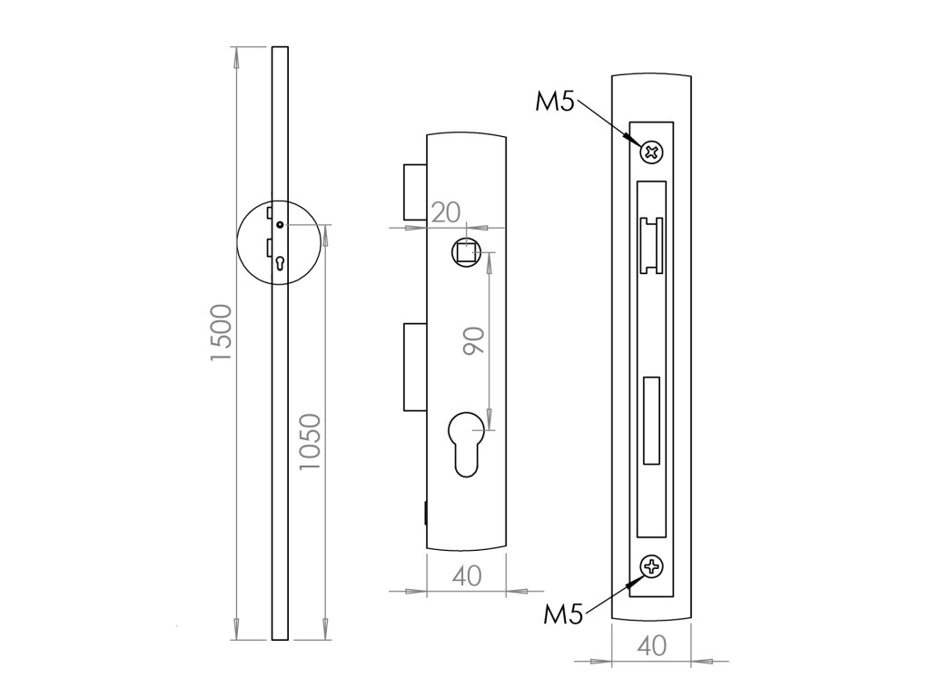 Profil 40 x 40 x 2 x 1500 mm so zámkom ZM90/40H, pravý