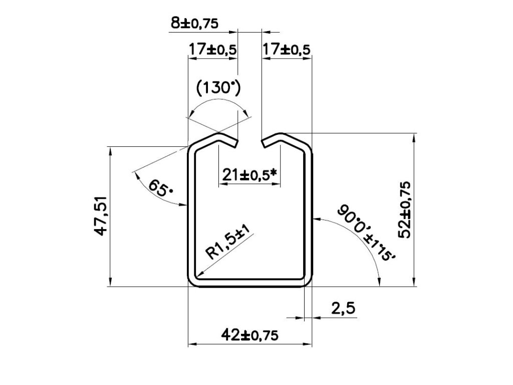 Profil MEDIO 42 x 52 x 2,5 x 2000 mm