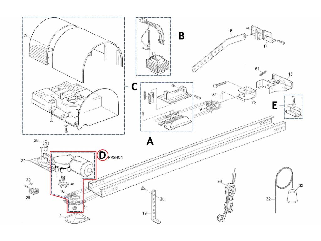 PRSH04 (SPA03) kit pohonu pre SHEL/POP/SPIDO, 24 V
