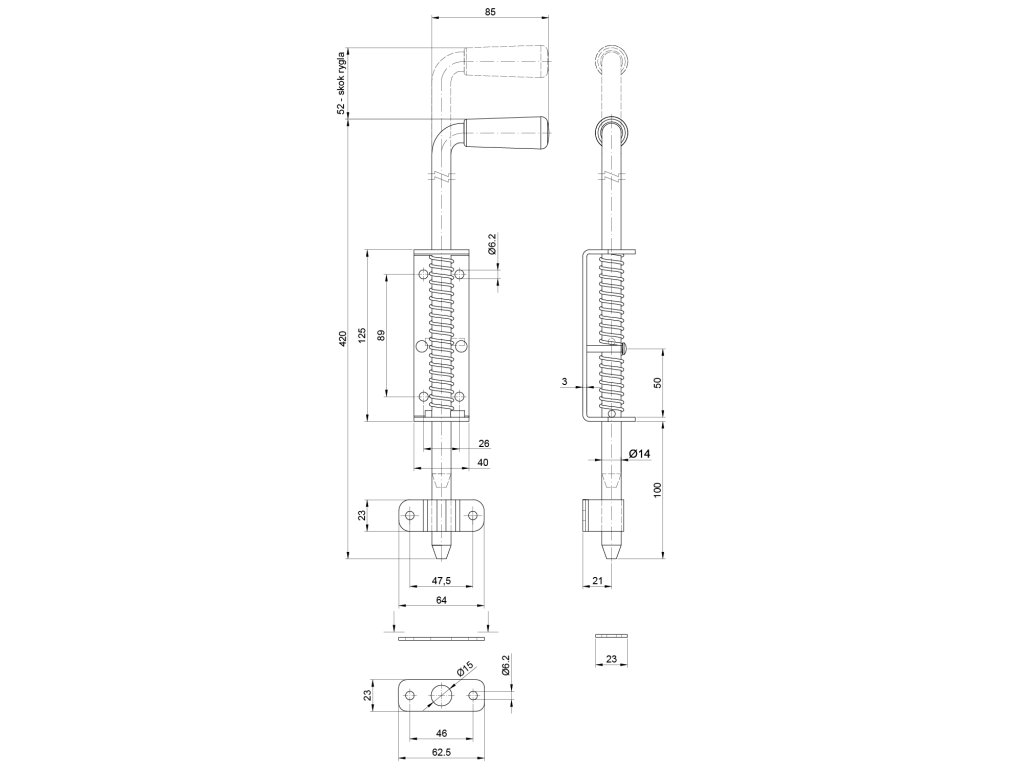 Rígeľ navárací ø 14mm, L: 420mm, pozinkovaný s pružinouDodatočné parametre