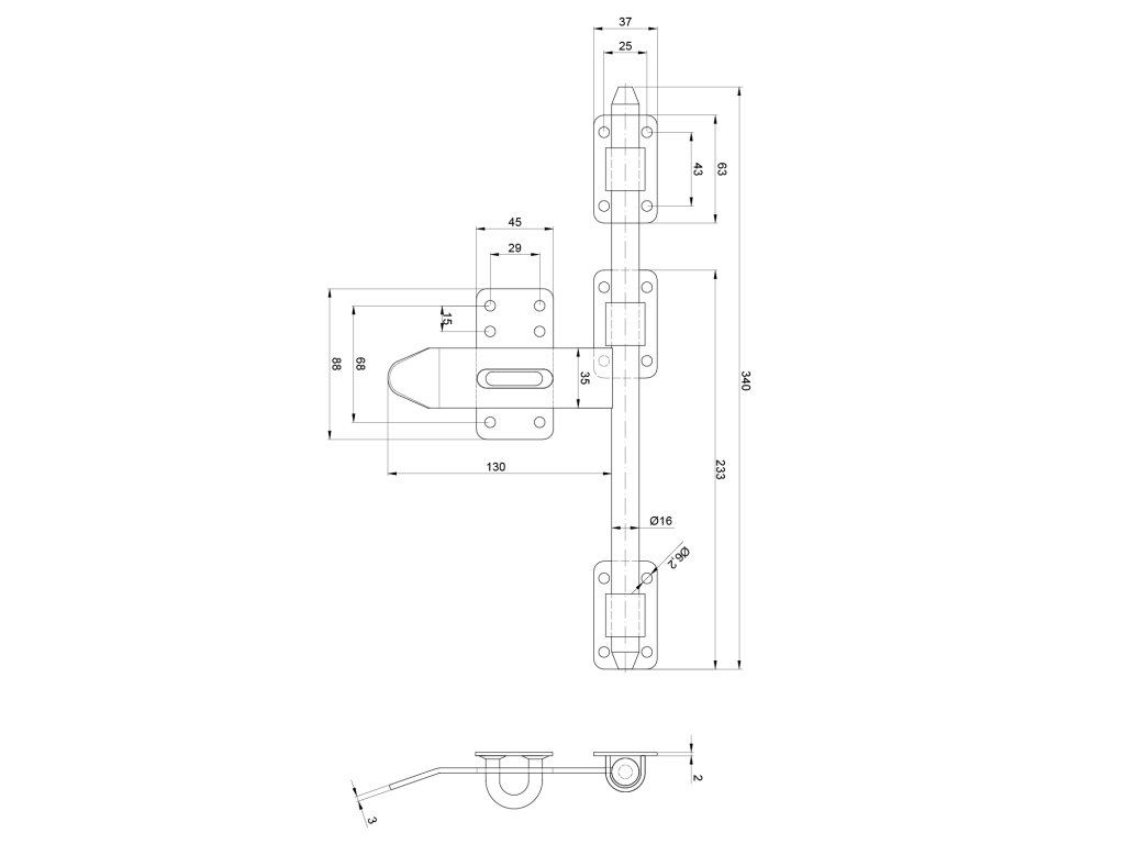 Rígeľ navárací ø 16 mm, L = 340 mm, pozinkovaný