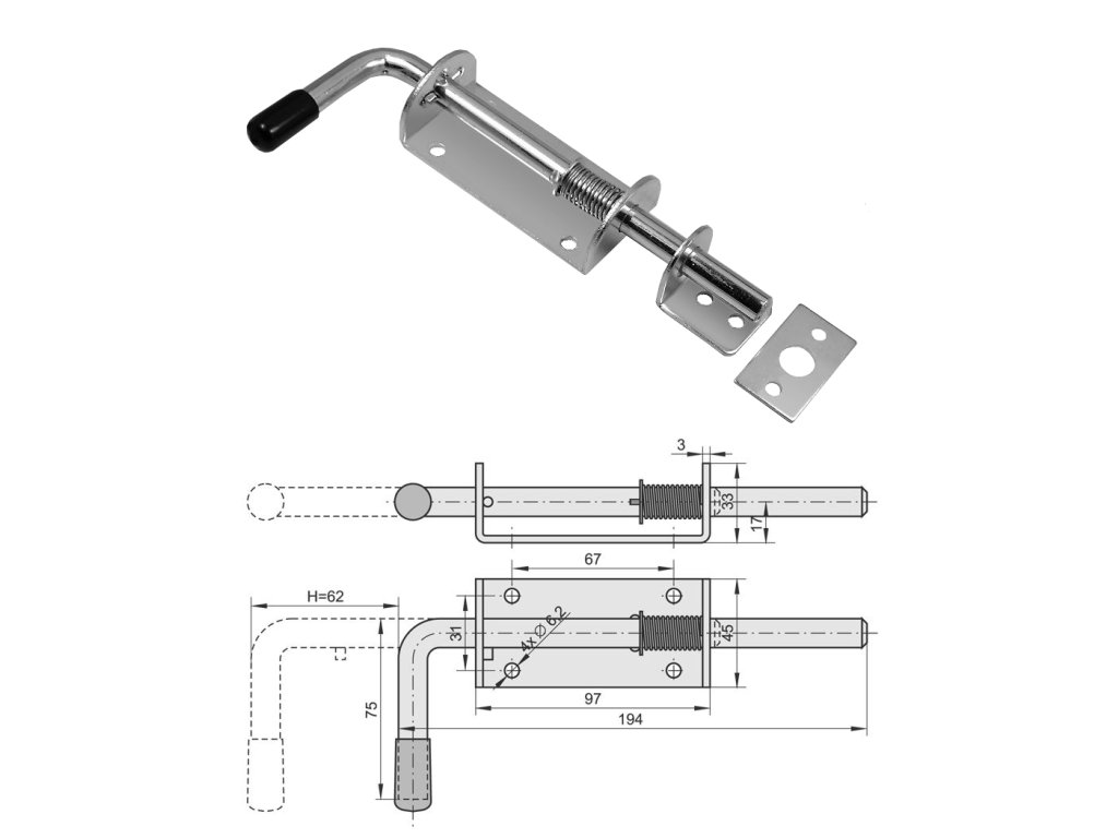 rígeľ navárací s pružinou ø 12mm, L: 200mm, pozinkovanýDodatočné parametre