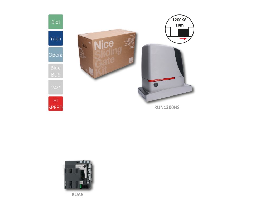 RUN1200 HI-SPEED rýchly pohon pre posuvnú bránu do 1200kg, 24V, v-32cm/s, 700W, riadiaca jednotka BlueBus, spolupráca s akumulátorom PS524 a 2x B12-B