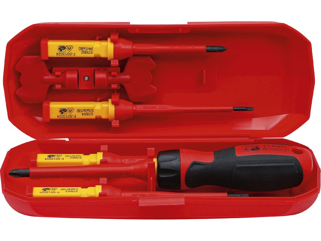 Sada skrutkovačov VDE | s vymeniteľnými čepeľami | 8-dielna kompaktná VDE sada nástrojov (nielen) pre elektrikárovPre prácu na rôznych miestach, ako sú staveniská, solárne inštalácie a rozvodné skrine