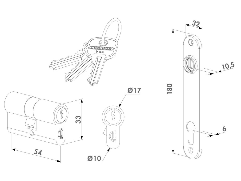 1 KS LOCINOX® 3012-54-STD- cylindrická vložka EURO 27/27mm, niklová, 3 kľúče